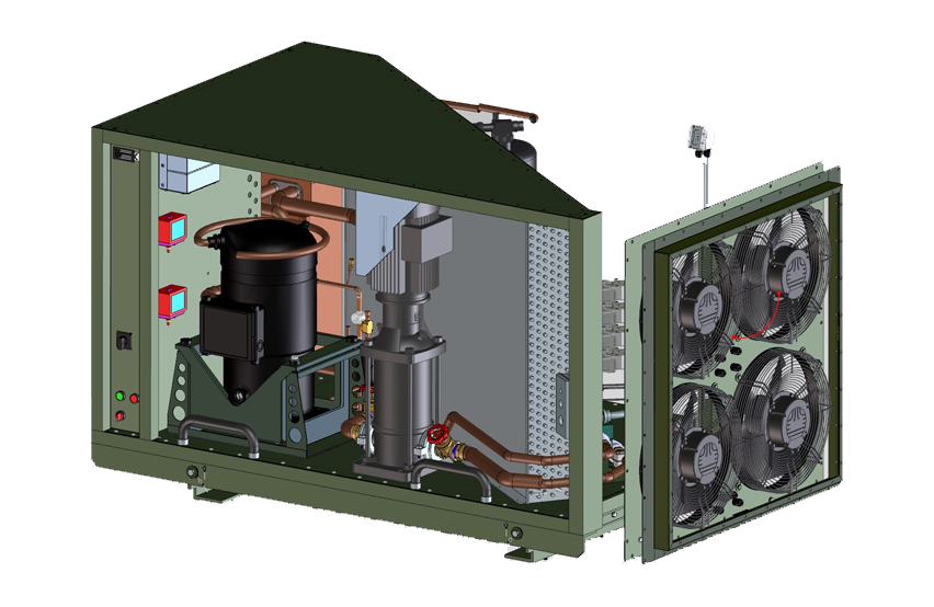 The liquid cooling unit (LCU) type STA 7-B is designed for cooling military IT, server, electronic and radar systems in extreme operating temperatures from -40 °C up to +55 °C. The units can be used in various climate zones such as A1 to A3, B1 to B3, C0 and C1 according to STANAG 2895. The cooling capacity is up to 15 kW.