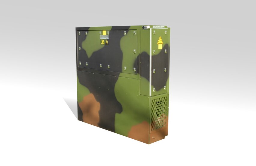 The HVAC units type K13W-B to K31W-B are specially designed for cooling, heating and ventilation of military containers. The devices are attached to the outside of the container by a mounting frame. Air distribution systems distribute the temperature-controlled circulating air inside the container. Large temperature fluctuations caused by outside climate conditions or by the heat transfer from electrical equipment inside the cabin are compensated by a temperature control system.